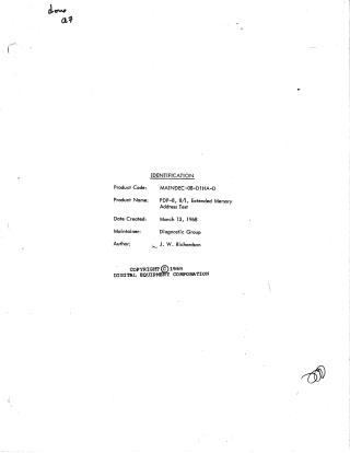 Purpose: The program is designed to verify that every memory location in a PDP-8 or 8/I computer (equipped with the extended memory option) can be addressed and accessed correctly. It ensures that memory not occupied by the program is functioning properly.