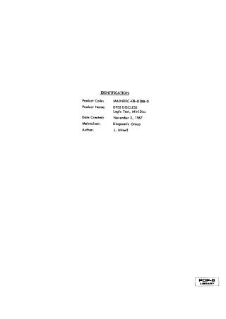 This document serves as the technical manual and diagnostic test for the DF32 Disc Logic and its computer interface for the PDP-8. It outlines procedures for testing the logic and interface independently of the physical disc hardware.