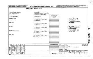 This document is a technical field maintenance print set for the Digital Equipment Corporation RL01/RL02 Disk Drive. It provides detailed engineering schematics, assembly diagrams, and comprehensive parts lists for the various subsystems of the disk drive unit.