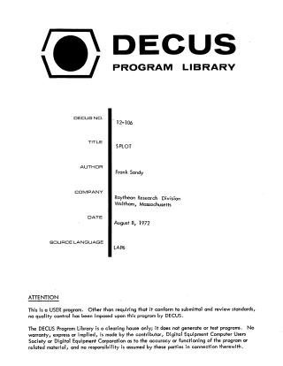 This document serves as the user manual for $PLOT, a FOCAL-12 overlay designed for the PDP-12 computer. The program allows users to operate an incremental digital plotter directly from FOCAL programs. It provides two main functional capabilities via "extra functions":