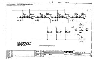 This document is a technical schematic for a Diode Gate circuit (part number B113-0-1) produced by Digital Equipment Corporation in 1964. The diagram illustrates a series of three-input logic gates utilizing DEC2894-1B transistors and D-662/D-664 diodes. Key components include multiple 12,000 and 68,000-ohm resistors, 1,500-ohm resistors for the lower section, and various capacitors. The schematic provides the circuit logic layout, including input nodes (D, E, J, K, N, O, P, U) and output nodes (F, L, R, V).