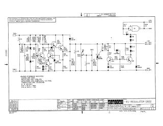 Summary This document is an electrical schematic for a -6V power supply regulator designed by Digital Equipment Corporation in 1969. The circuit utilizes a DEC7401 integrated circuit, various transistors (DEC6534B, DEC2904, DEC3790), and diodes (D662) to regulate voltage. The schematic includes component values, pin configurations, a transistor and diode conversion chart, and standard notes regarding component tolerances and proprietary usage rights.