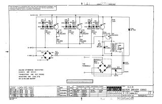 This document is a technical schematic diagram for a Digital Equipment Corporation Silicon Controlled Rectifier (SCR) Motor Driver, dated 1965. The circuit uses several transistors (DEC 3638B, 2N2646), diodes (1N4003, D664, D662, 1N758), and a Motorola MDA 942-5 bridge rectifier to control an SCR (2N4443). The diagram includes technical specifications for components, a transistor and diode conversion chart, and is intended for test and maintenance purposes.