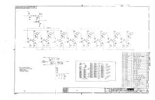 The schematic details the circuit logic, utilizing a variety of transistors (specifically DEC4258 and DEC4274 models), diodes (FD777, D664, and D662), and various resistors and capacitors. The page includes a comprehensive parts list, providing specifications for 21 unique components, including physical hardware like eyelets and handles, as well as electronic parts such as resistors and capacitors. The circuit operates using power rails of +5V, -15V, and -2.2V, with an "Enable (L)" function. The document also references associated assembly and coordinate hole location diagrams.