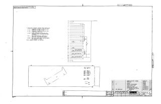 This document is a technical schematic for a Digital Equipment Corporation (DEC) Cable Interface Board (#1). It details the wiring configuration, including various modem jumper functions for different standard interface requirements (EIA, 202, 301, and 811). The schematic shows the pin assignments and connections for the board, and includes a parts list specifying components such as handles, eyelets, and connectors required for the board assembly.
