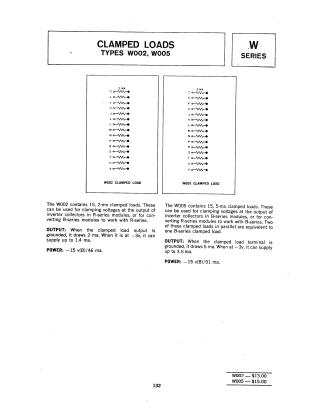 - W005 Clamped Load: Designed for use with B-series modules or to convert R-series modules for use with B-series. It draws 5 mA when grounded and supplies up to 3.5 mA at -3v. It requires -15v power at 91 mA. Parallel use of two W005 loads is equivalent to a single B-series clamped load.