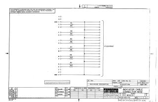 Summary: This document is a 1966 schematic diagram provided by the Digital Equipment Corporation for the "Indicator Cable Connector W012." The diagram details a flexprint circuit configuration consisting of twelve input/output points (A through V, excluding specific letters) connected through a series of twelve 1.5K, 1/4W, 5% resistors (R1 through R12) to corresponding pins. The document includes a parts list identifying the resistor specifications and notes that the schematic is intended for test and maintenance purposes only.
