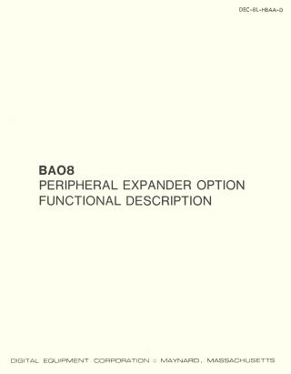 This document provides a functional description of the BA08 Peripheral Expander option, designed for use with the PDP-8/L Programmed Data Processor. The BA08 allows for the installation of additional PDP-8/L options that cannot fit directly into the main processor chassis.