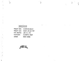 - Program Logic: The document includes the assembly source code for the test, which runs at a rate of 4,726 tests per second, confirming the integrity of the hardware's interrupt and jump-to-subroutine logic.