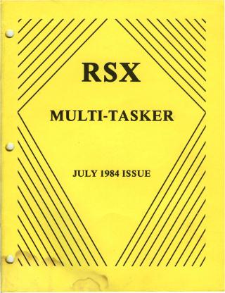 This document is the July 1984 issue of the "RSX Multi-Tasker," a newsletter for the RSX Special Interest Group (SIG) of DECUS (Digital Equipment Corporation Users Society).