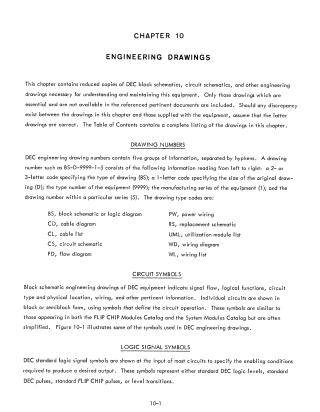 This document, Chapter 10 of a manual, provides comprehensive technical information regarding engineering drawings for DEC equipment, specifically for the PDP-8 computer.