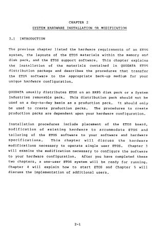 This document provides technical instructions for the initial hardware installation and configuration of the ETOS operating system on PDP-8 computer systems. It covers the following key areas: