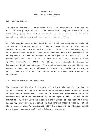 This document details the privileged operations available within the ETOS system, which are restricted to authorized users due to the potential for system corruption or interference with other users.