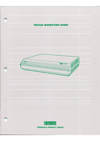This document, the "DECtalk Marketing Guide" from Digital Equipment Corporation's Terminals Product Group (1984), serves as a comprehensive resource for sales personnel selling the DECtalk voice synthesis product.