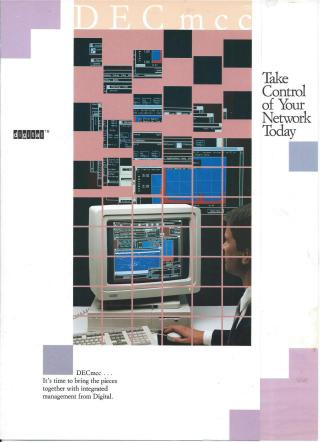 The overall message is to "Take Control of Your Network Today" by adopting Digital's integrated management approach, positioning DECmcc as the solution for modern network challenges. A phone number is provided for inquiries and purchases.
