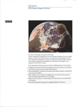 This document describes Digital's VAX System Support Services, designed to address the challenges of complex, dynamic, and interdependent computing environments.