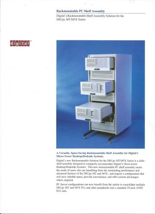 This document describes Digital's Rackmountable PC Shelf Assembly, a slide-shelf solution specifically designed for the DECpc MT and MTE Series micro-tower desktop/deskside systems.