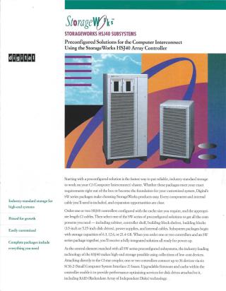 - Scalability & Capacity: Initial storage capacities range from 6.3 GB to 21.4 GB, expandable to hundreds of gigabytes (e.g., over 225 GB in the larger SW800 cabinet) by adding more drives (3.5-inch RZ26/RZ28 and 5.25-inch RZ74) and shelves.