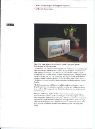The TK50 combines Digital's reputation for reliability, compatibility, and performance with a compact size and low cost, making it an essential and valuable high-capacity data storage solution for microcomputer environments.