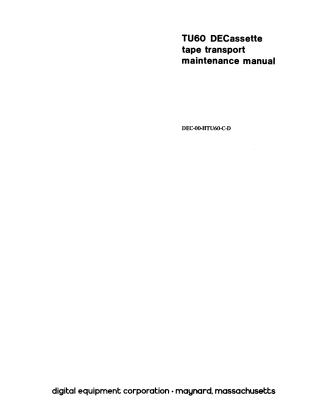 The manual provides comprehensive technical information for the installation, operation, theory, and maintenance of the TU60, a solid-state, magnetic tape data storage device featuring two independent tape drives. It emphasizes the critical importance of using only DEC-certified Digital Tape Cassettes due to the device's specific drive tensions and operational characteristics, explicitly warning against the use of audio cassettes.