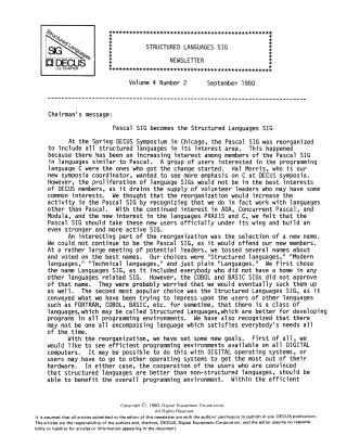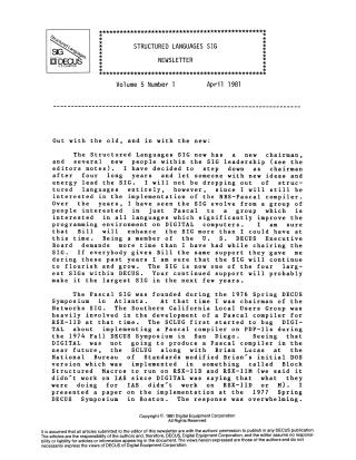 - SIG Direction and Renaming: The SIG Chairman, James W. Livingston, Jr., outlines a clearer mission for the SIG: to influence Digital Equipment Corporation (DEC) in new product development and existing product maintenance. He proposes renaming the "Structured Languages SIG" to the "Languages and Tools SIG" (LTSIG) to reflect a broader interest in software development tools, including UNIX.