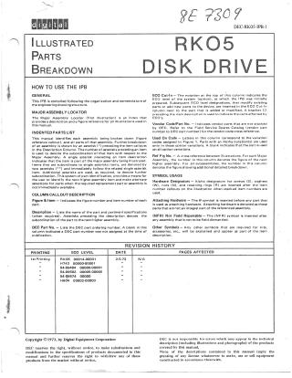 This document is an Illustrated Parts Breakdown (IPB) for the Digital Equipment Corporation (DEC) RK05 Disk Drive, published in 1973.