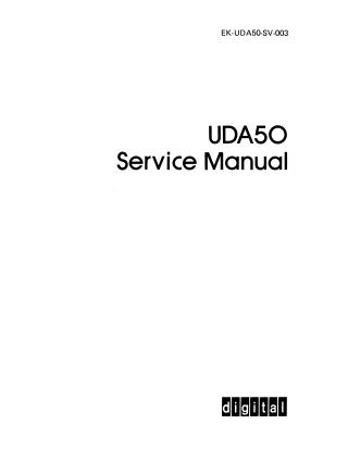 This service manual provides comprehensive maintenance and troubleshooting procedures for the UDA50 Disk Controller, emphasizing a module replacement philosophy rather than component repair. It details the controller's Field Replaceable Units (FRUs) and outlines three main maintenance features: UDA50-resident diagnostics, LED maintenance displays, and host-resident diagnostics.
