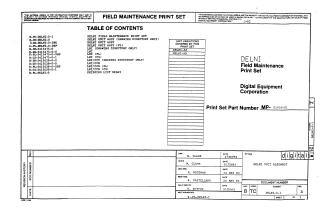 The print set includes a detailed table of contents and various types of documentation essential for maintenance, assembly, and understanding of the device: