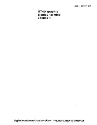 DEC-11-HGTVA-B-D GT40 Graphic Display Terminal Volume 1 Nov74