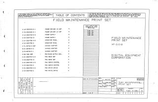The document includes a Table of Contents listing various components and their corresponding documentation, such as: - Power Driver 10 AMP - Power Supply - Operator Panel - UNIBUS Adapter - PWA Read Amp - PWA Servo Control - PWA Write Drive - PWA MSCP - Formatter Write - Formatter Read - Line Filter - Tape Transport (ICI)