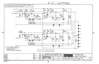 The schematic illustrates a circuit with two largely symmetrical amplifier/selector channels. Each channel incorporates multiple transistors (predominantly DEC 2894-3A, with Q3 and Q4 specified as DEC 3009-A, equivalent to 2N3009) and D662 diodes (equivalent to IN645). The circuit operates using +10V, -5V, and ground (GND CM,VO) power rails, with specific input lines designated as D O, F O, N O, and R O. Output signals appear to be routed through a series of diodes (D7-D20) which include a -3V reference point.