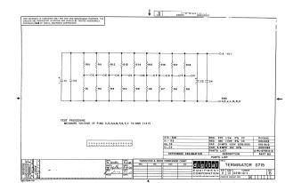 A test procedure is included, instructing measurement of the voltage at these output pins relative to ground, with an expected value of +4V, suggesting its function as a voltage divider or termination network.