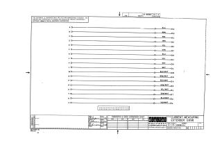 The schematic visually maps indexed lines (A through V) on one side to specific color-coded wires on the other side. The wire colors include solid colors (Black, Brown, Red, Orange, Yellow, Green, Blue, Violet, Gray, White) and corresponding white-striped combinations (e.g., Black/White, Brown/White), each associated with a unique line index.