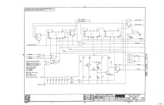 - Clock Processing and Output: Logic gates (DEC7400, DEC7402) and JK flip-flops (DEC7473, specifically E7) process these signals to produce various clock outputs, including "CLOCK L," "CLOCK H," "WRITE CLOCK L," and "WRITE CLOCK H."