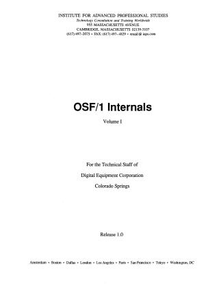 This document is a comprehensive course manual titled "OSF/1 Internals Volume I," providing a deep technical introduction to the OSF/1 operating system kernel. OSF/1 integrates enhanced 4.4BSD UNIX functionality with the Mach microkernel, designed from the ground up for parallel and distributed environments.