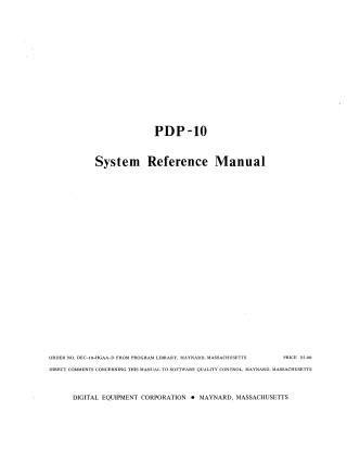 This document is the PDP-10 System Reference Manual, published in April 1968, detailing the architecture, instruction set, and basic input-output equipment of the Digital Equipment Corporation PDP-10 computer.