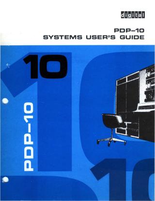 This document is a "PDP-10 SYSTEMS USER'S GUIDE" published by Digital Equipment Corporation in 1967 (with a supplement from October-December 1968). It serves as a comprehensive manual for users of the PDP-10 computer system, detailing its software and operational procedures.