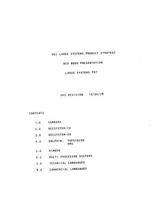 This document outlines Digital Equipment Corporation's (DEC) Large Systems Product Strategy as of October 30, 1978.