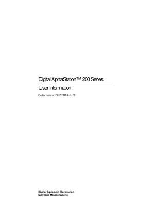 This document is a comprehensive user guide for the Digital AlphaStation 200 Series system, covering its installation, operation, configuration, maintenance, and troubleshooting. It begins by introducing the high-performance system and outlining essential steps for getting started, including selecting a proper site, connecting components, network setup, and initial system startup and shutdown. Recommendations for good posture and work habits are also provided.