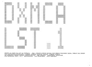 DXMCA.LST.1 file, generating 304 Pages of Output, 113 Disk Pages Read, and consuming 8.596 Seconds CPU Time.