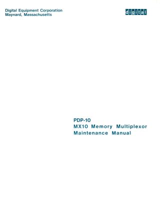 This document is the Maintenance Manual for the Digital Equipment Corporation (DEC) PDP-10 MX10 Memory Multiplexor, first printed in May 1969.