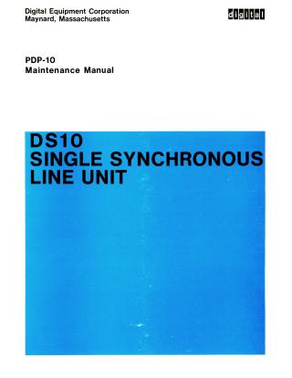 This document is the Digital Equipment Corporation PDP-10 Maintenance Manual for the DS10 Single Synchronous Line Unit, published in December 1970 (DEC-10-HDSA-D).