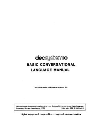 This document is a language manual for DECsystem-10 BASIC (version 17D), a conversational and easy-to-learn programming language designed for problem-solving in scientific, business, and educational environments, particularly suited for time-sharing systems.