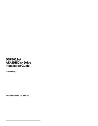 This document is an Installation Guide for the Digital Equipment Corporation DSP2022-A ATA/IDE 2.5-inch Disk Drive, published in June 1992.