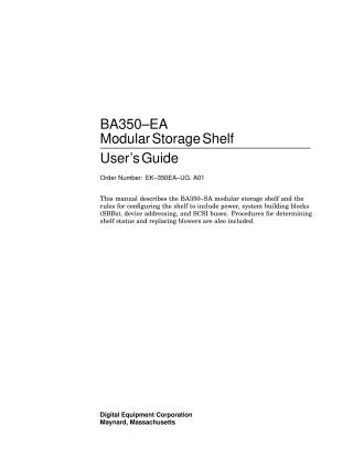 This user guide describes the BA350-EA Modular Storage Shelf, detailing its configuration, installation, and maintenance within a DECstor/me modular storage system.