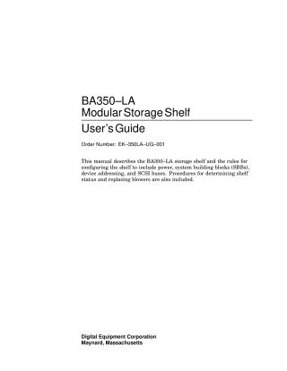 This document, the "BA350-LA Modular Storage Shelf User's Guide," provides comprehensive instructions for configuring, installing, and maintaining the BA350-LA modular storage shelf.