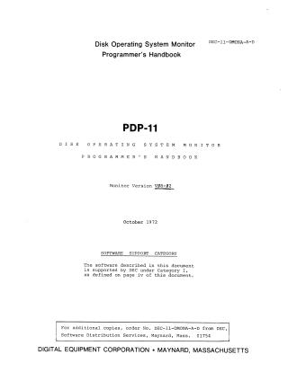 DEC-11-OMONA-A-D DOS V08-02 Programmers Handbook Oct72