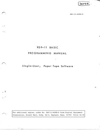 DEC-11-AJPB-D PDP-11 BASIC Programming Manual Dec70
