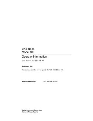 This "VAX 4000 Model 100 Operator Information" manual is designed for both experienced and inexperienced users, providing comprehensive guidance on operating the VAX 4000 Model 100 system.