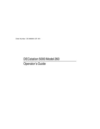 This document is the Operator's Guide for the DECstation 5000 Model 260 workstation, published in March 1993. It provides comprehensive instructions for users, system managers, and service representatives on the hardware operation, setup, and maintenance of the workstation.